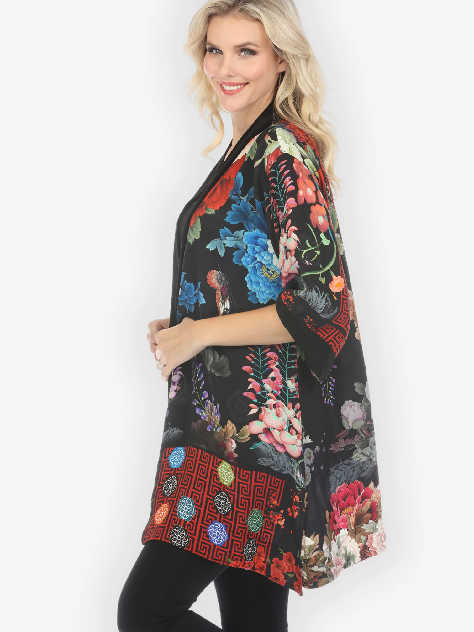 Flowers Over Water Silk Blend Kimono Jacket