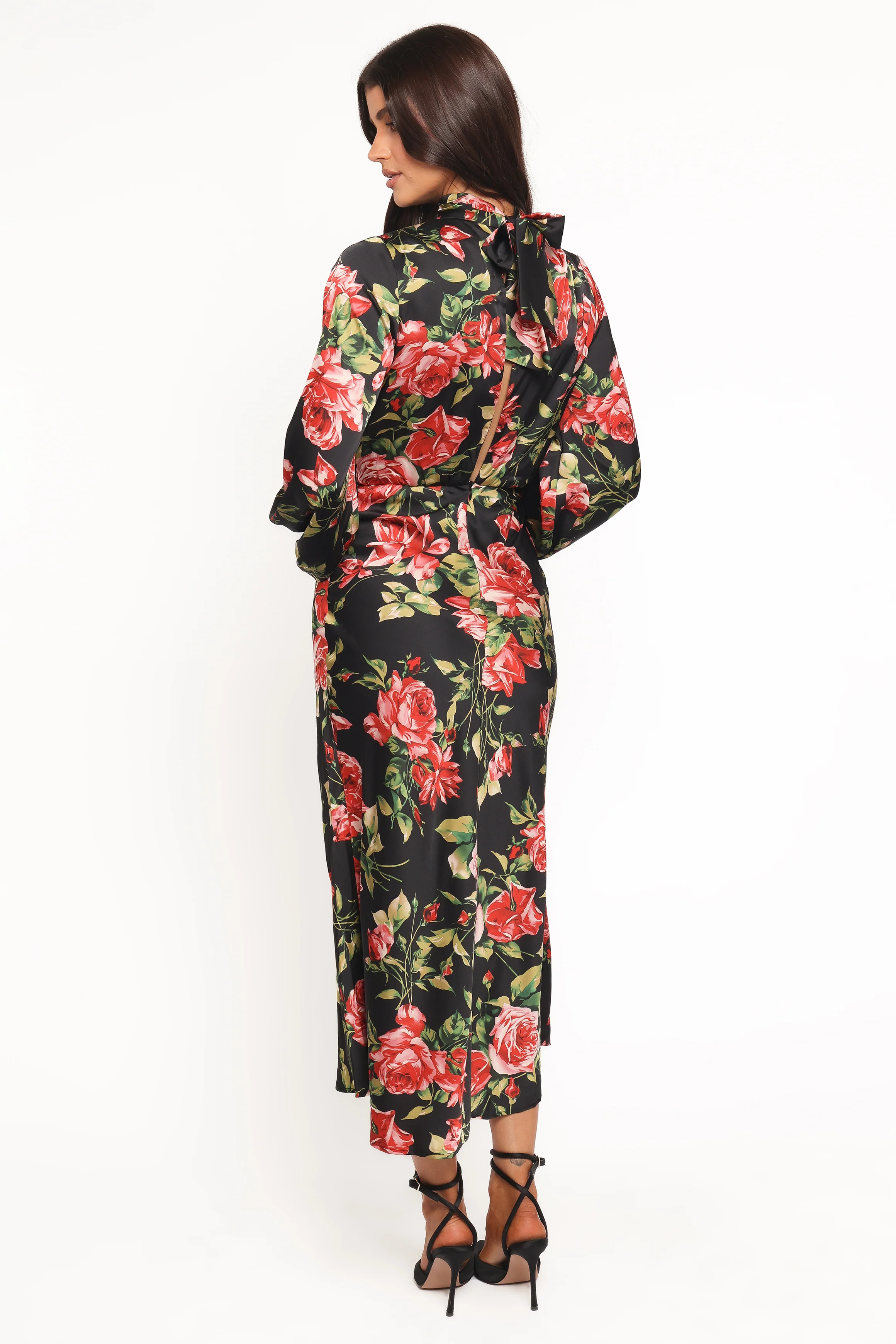 Perrie Long Sleeve Midi Dress - Black Floral
